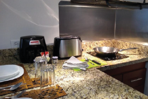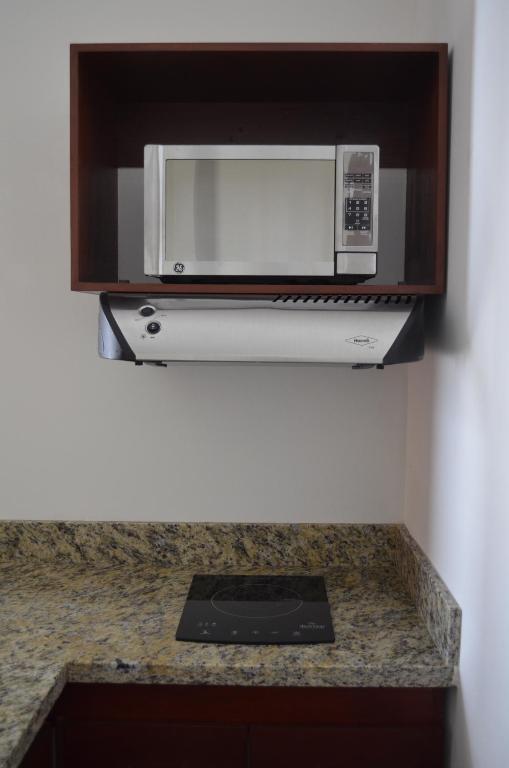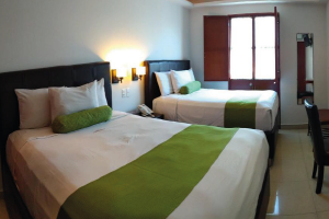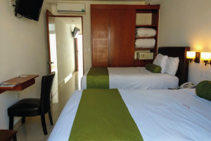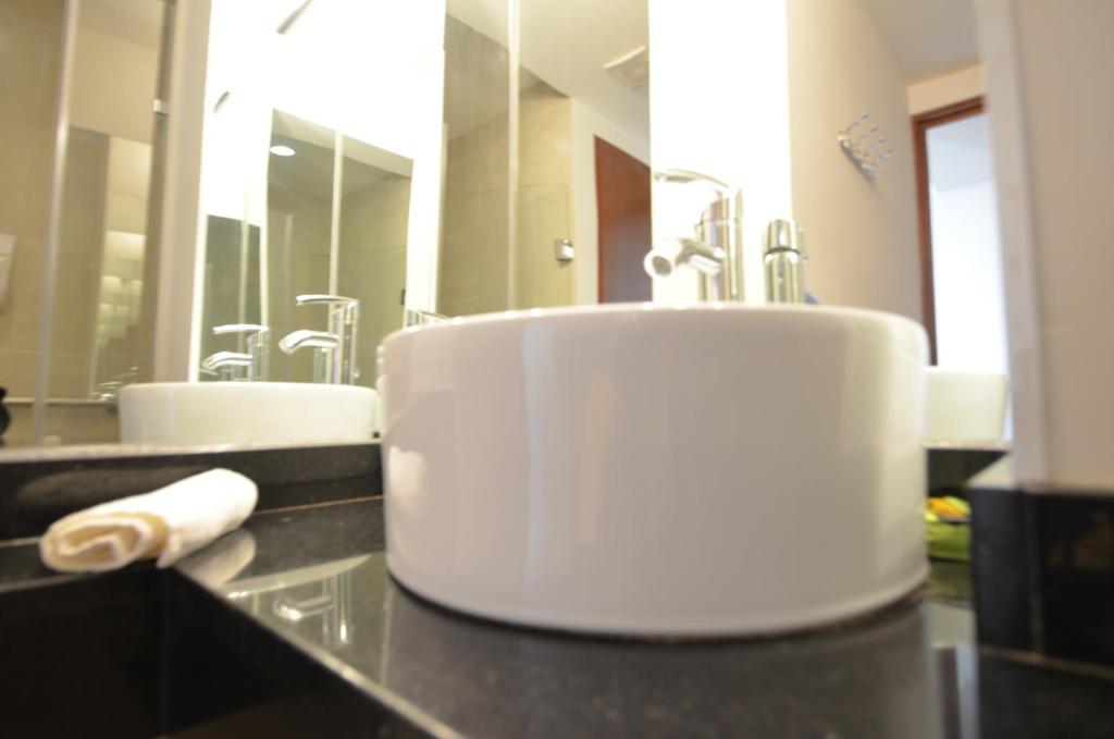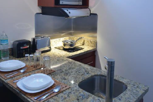 Nuestra Doble / Doble Suite cuenta con un balcón, todo el mobiliario en piel, dividido en zona de estar y dormitorio, cuenta con dos camas matrimoniales con espuma de memoria para un mayor confort, dos televisores de pantalla plana de alta definición con canales internacionales por cable, cocineta con encimera de granito, parrilla de inducción, taburetes para barra de piel, refrigerador y microondas. Disfrute de Wi-Fi, climatizador individual e hidro ducha en cada Suite.