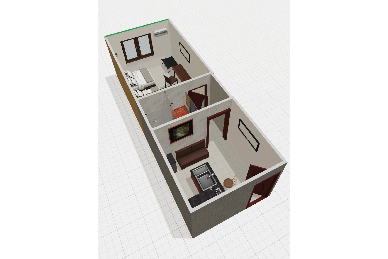 Cocineta: refrigerador, horno de microondas, hornilla de inducción, cafetera y tetera, loza, utensilios de cocina y cubertería, barra/desayunador con sillas.