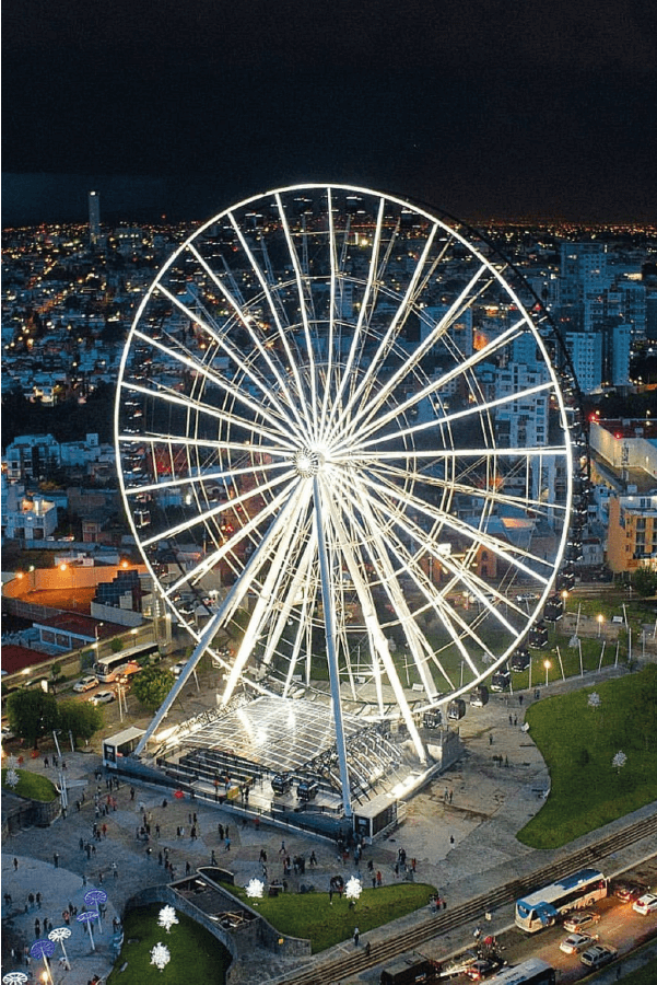 La Estrella de Puebla es una rueda de fabricación alemana. Es el modelo R80XL, que es la mayor de las ruedas transportables. Se llama transportable porque en cualquier momento se puede desmontar y colocar en otro lugar.share" target="_blank" class="btn btn-link text-primary"> Mapa