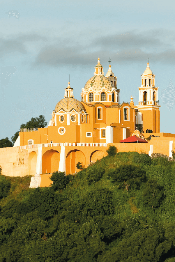 Cholula es considerada la ciudad más antigua de América, habitada sin interrupción desde sus orígenes. El antiguo convento franciscano de San Gabriel, uno de los más antiguos de América, se encuentra en esta ciudad. Tanto la ciudad como el convento se alzan junto al volcán Popocatépetl, como si intentaran alcanzar a ese gigante nevado. No olvidemos el Santuario de Nuestra Señora de los Remedios, construido en el siglo XVI por los españoles y hecho de cúpulas cubiertas con azulejos. Se colocó justo sobre la Gran Pirámide, la base que parece ser una colina en lugar de un sitio arqueológico. El tiempo, las personas y la vida van y vienen debajo de este sitio. Al visitar esta ciudad mágica, puede explorar la Gran Pirámide y caminar a través de su laberinto de túneles o sus caminos exteriores.